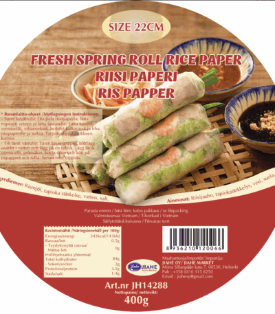 RICE PAPER / Riisi paperi / Ris papper * Ainesosat: Riisijauho, tapiokatärkkelys, vesi, suola; Ingredienser: Rismjöl, tapioka stärkelse, vatten, salt